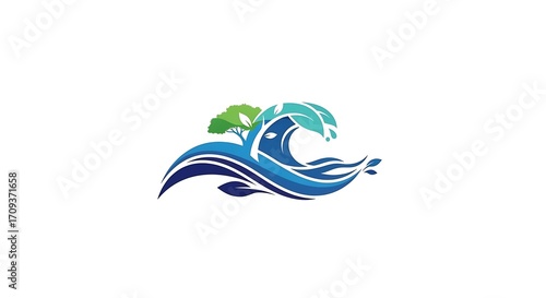 © surya, Obraz premium Oceanic Wave and Nature Logo.