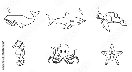 Fototapeta premium Oceanic Wonders: A captivating collection of intricately designed line art,...