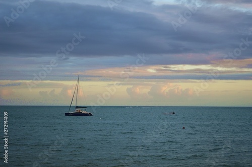© janellins, Fototapeta premium OCEANO MAR BARCO INFINITO CÉU VELEIRO