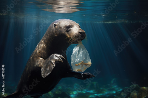 Fototapeta premium Oceans full of marine debris, dying marine life