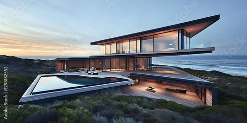 © Siasart Studio, Fototapeta premium Oceanview Modern House 3D Illustration