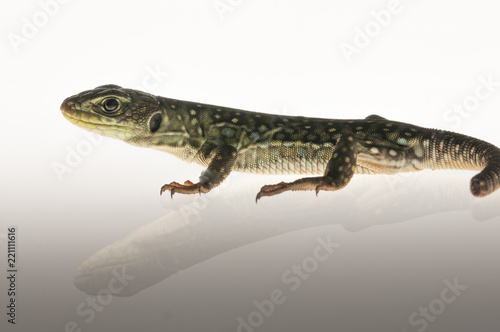 © franciscoelias, Obraz premium Ocelated lizard (Timon lepidus) high key, portrait