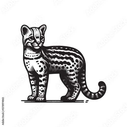 Fototapeta premium Ocelot Side View Vector Icon – Vintage Logo & Retro Illustration