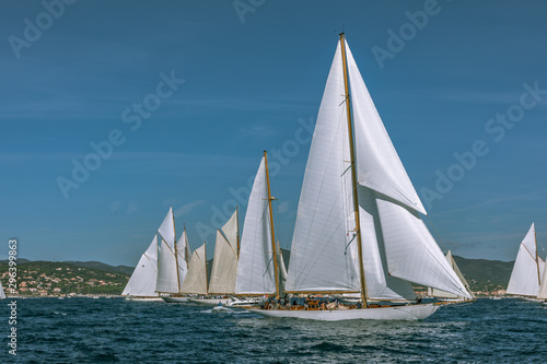 © chromoprisme, Fototapeta premium 05 OCT 2019 - Saint-Tropez, Var, France - Sailboats in the bay during the 2019 edition of 'Les Voiles de Saint-Tropez' regatta
