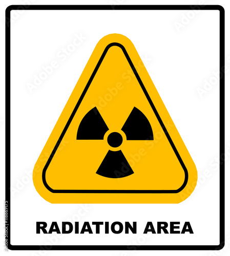 © merly69, Fototapeta premium Octagon yellow and black caution with radiation hazard text and sign isolated on white background.-jpg format