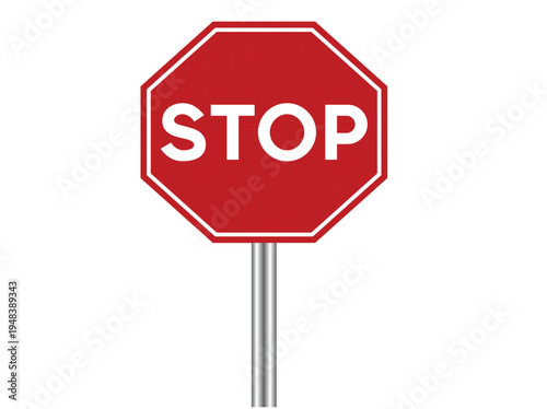 © Shohag, Obraz premium Octagonal Red Stop Sign on Metal Pole, Traffic Control Symbol, image symbolizes prohibition, traffic rules, and caution, Clear Background