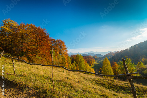 Naklejka premium October autumn scenery in remote mountain area in Transylvania