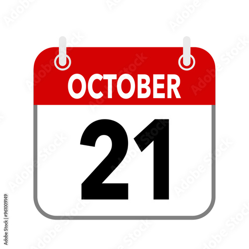© mayura, Fototapeta premium 21 October, calendar date icon on white background.