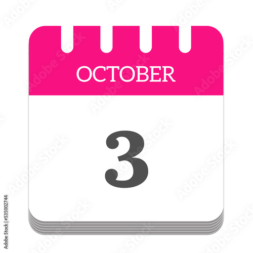 © Theastock, Fototapeta premium October 3 calendar flat icon