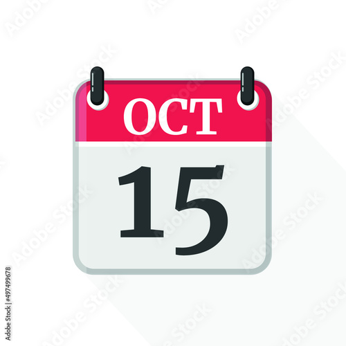 Fototapeta premium October 15 Calendar Icon. Calendar Icon with white background. Flat style. Date, day and month