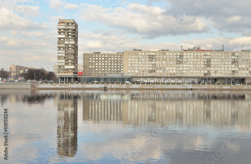 Naklejka premium October embankment in St.Petersburg at cloud spring day, Russia.