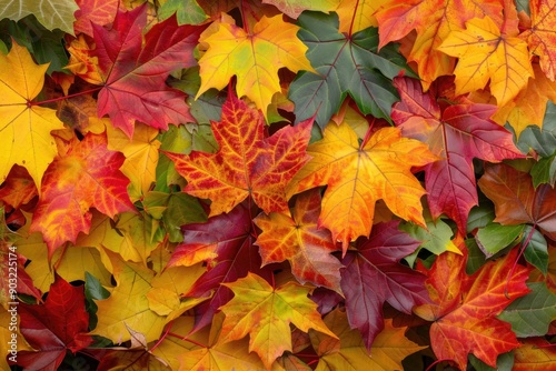 Fototapeta premium October Leaves. Colorful Fall Leaves Background with Yellow, Orange, and Red Maple Trees