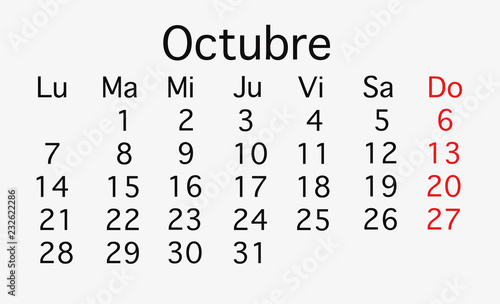 © Gelpi, Obraz premium October 2019 planing Calendar