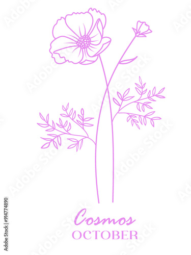 © Digital Waves, Naklejka premium October Purple Birth Flower Vector
