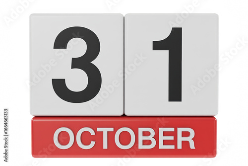 © info, Fototapeta premium October 31st Date Block Display with Low Feedback White Cubes on Transparent Backdrop for Calendar, Schedule, and Event Planning Visuals