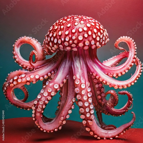 Obraz premium octopus.a lively and imaginative depiction of a pink octopus against a vivid red studio backdrop, highlighting the creature's graceful movements and whimsical personality. The composition employs bold