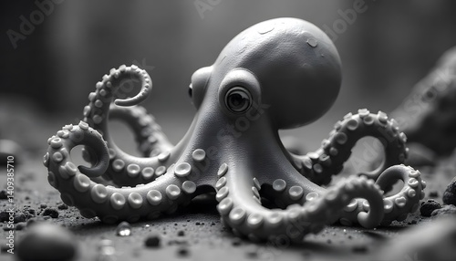 © Aris, Obraz premium Octopus Creature on Ground in Monochrome Low Angle