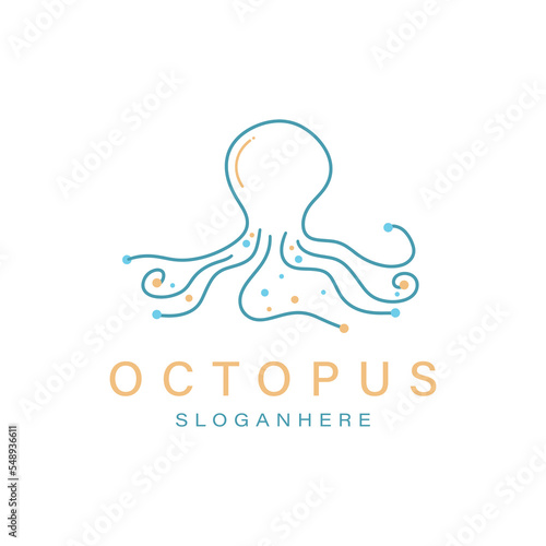 © Andreflamboyan, Obraz premium Octopus Cuttlefish Squid Tentacles Logo Design Template Monoline Style