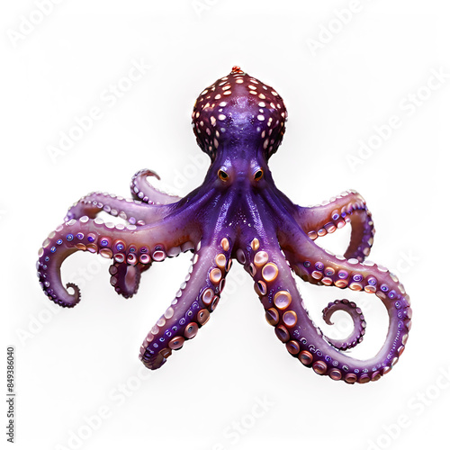 © BISO, Fototapeta premium Octopus isolated on white or transparent png, purple.