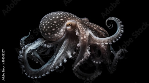 Obraz premium Octopus on black background - Generative AI
