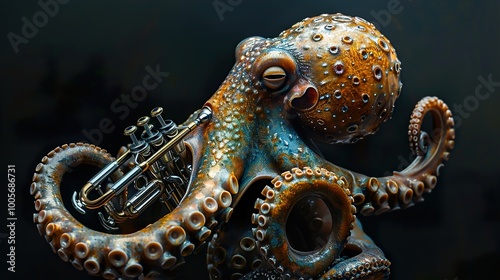 © Infinity, Obraz premium Octopus Playing a Trumpet: A Surreal Underwater Symphony