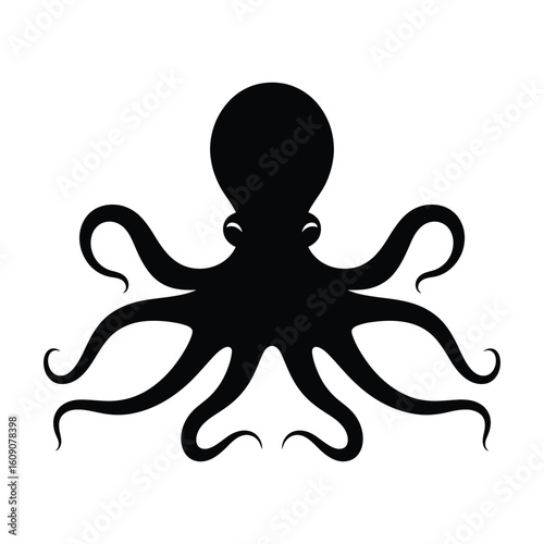 Fototapeta premium Octopus Silhouette: Black Marine Animal Minimalist Vector Illustration.