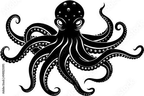 Fototapeta premium octopus silhouette, octopus icon vector illustration