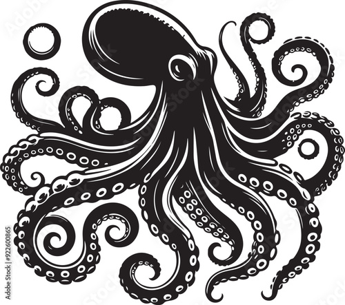Fototapeta premium Octopus Silhouette Vector Illustration On Isolated White Background