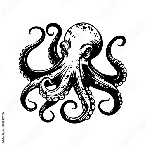 © Jackson Cadillac, Naklejka premium Octpous engraving, scary devilfish etching isolated vector illustration