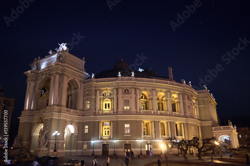 Naklejka premium Odessa, Ukraine - March 3, 2017 Opera House at night