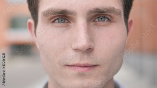 © stockbakers, Obraz premium Odkryty Zbliżenie twarzy młodego człowieka