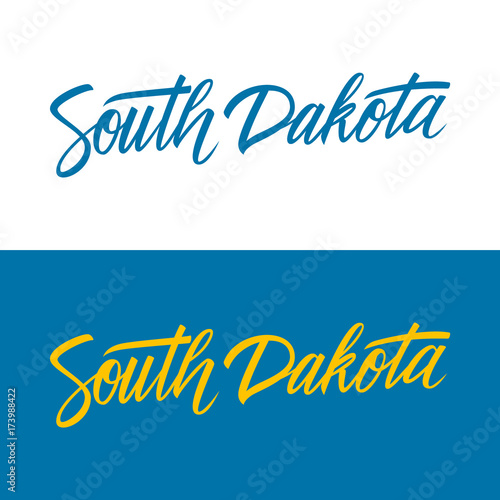 © FineVector, Obraz premium Odręczna nazwa stanu w USA w stanie Dakota Południowa. Element kaligraficzny do swojego projektu. Ilustracji wektorowych.