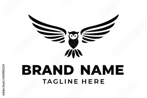 Obraz premium of a Stylized Owl with Outstretched Wings on a Branch Silhouette