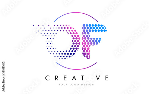 Naklejka premium OF O F Pink Magenta Dotted Bubble Letter Logo Design Vector