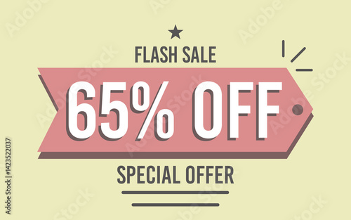 Fototapeta premium 65% off sixty five percent off 65%off flash sale, special offer discount 65 % off retail, price, sale, percentage, money, offer, promotion, discount, business finance, retrô design.
