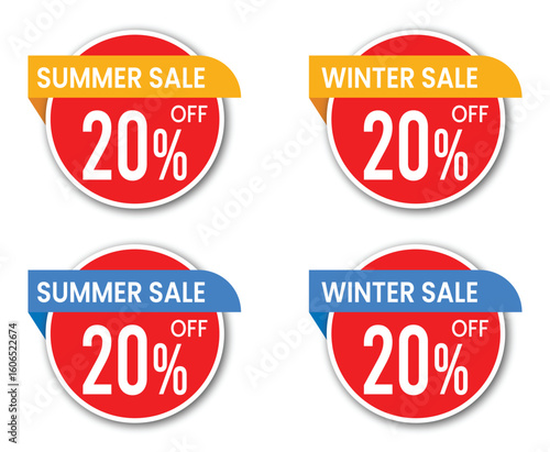 Obraz premium 20% off vector labels, summer winter sale vector icons, winter discount badge design pack