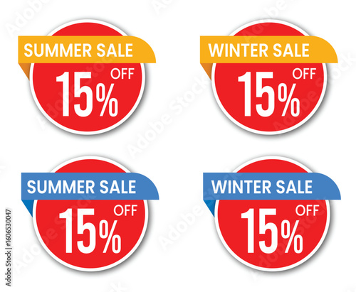 Fototapeta premium 15% off vector labels, summer winter sale vector icons, winter discount badge design pack