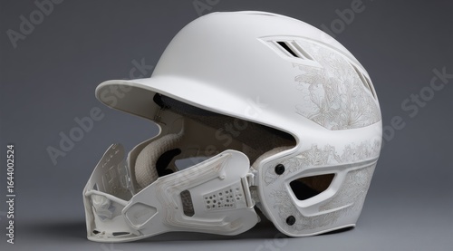 © FachAI, Fototapeta premium Off-white baseball batting helmet with integrated facemask; features a subtle, etched floral pattern