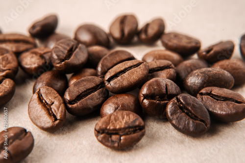 © Marharyta, Naklejka premium Сoffee beans in hand. View from above