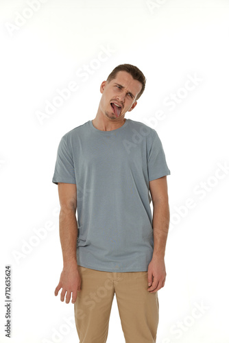 Fototapeta premium offended frustrated young man on white background. sadness