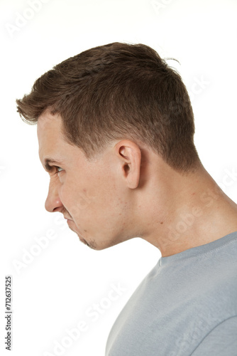 © Rychko Yevhen, Obraz premium offended frustrated young man on white background. sadness
