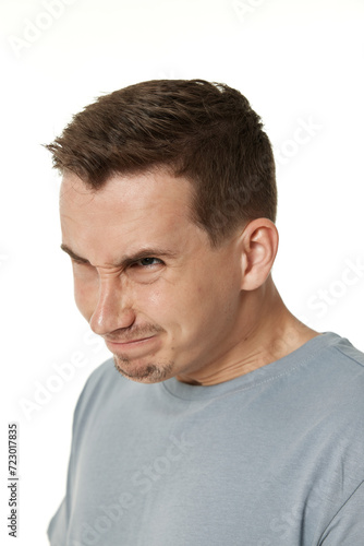 Fototapeta premium offended frustrated young man on white background. sadness