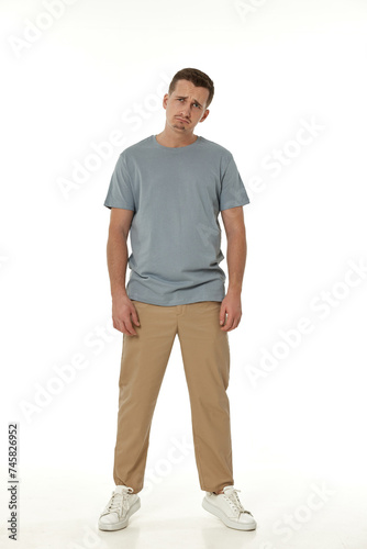 Fototapeta premium offended frustrated young man on white background. sadness