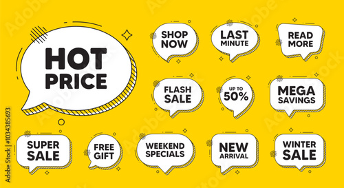 © blankstock, Obraz premium Offer speech bubble icons. Hot Price tag. Special offer Sale sign. Advertising Discounts symbol. Hot price chat offer. Speech bubble discount banner. Text box balloon. Vector