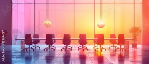 © Media Srock, Obraz premium Office and tables of glass workplace interior for start or end of business