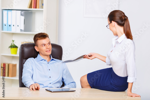 Obraz premium Office assistant flirting with her coworker.