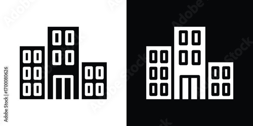 © Craft Studio, Obraz premium Office buildings icon silhouette vector illustration isolated flat style