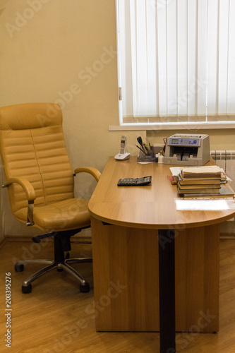 Fototapeta premium Office cabinet. Chair, table, documents.