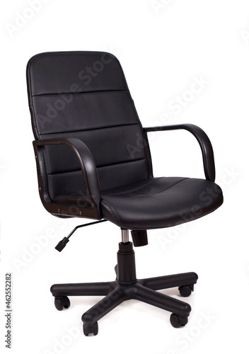 Fototapeta premium Office chair isolated on white background, modern adjustable chair from black leather.