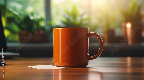 © Alexey, Obraz premium Office Coffee Break: Orange Mug and Notepad. Generative AI